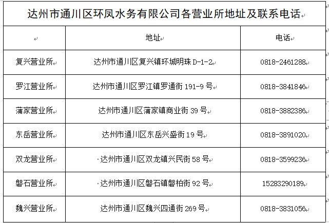 因環(huán)鳳水務公司(達州水務集團下屬子企業(yè))營銷系統(tǒng)升級,期間暫停開具線上水費發(fā)票業(yè)務,若需索取水費發(fā)票,可在各營業(yè)所線下辦理。給您帶來的不便,敬請諒解。如有疑問,請聯(lián)系各營業(yè)所。