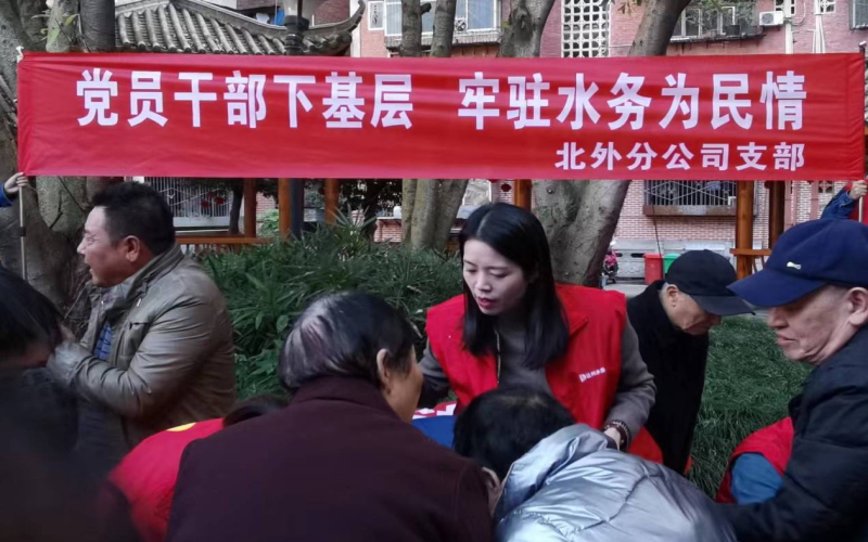 為深入貫徹落實(shí)“四下基層”安排部署,踐行為民服務(wù)宗旨,加強(qiáng)與用戶之間的溝通,提升供水服務(wù)質(zhì)量,11月17日,集團(tuán)總工程師李莉君帶領(lǐng)北外分公司黨員干部前往高家壩社區(qū)開展“黨員干部下基層,牢駐水務(wù)為民情〞供水服務(wù)專題活動(dòng)。