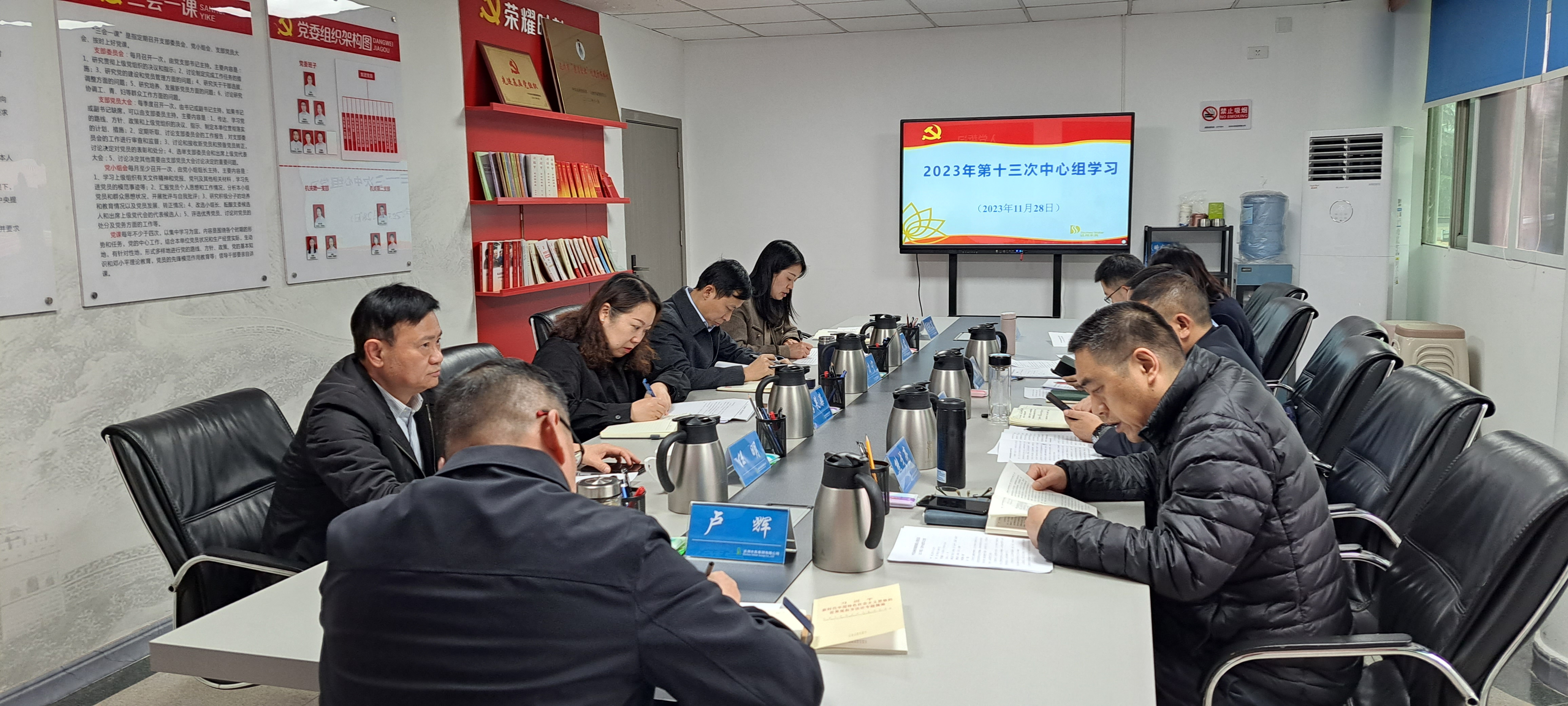 11月28日,集團黨委召開第13次理論中心組學(xué)習(xí)會,黨委書記、董事長盧輝主持會議,全體班子成員參加,市國資委調(diào)研員任明列席旁聽并指導(dǎo)會議。