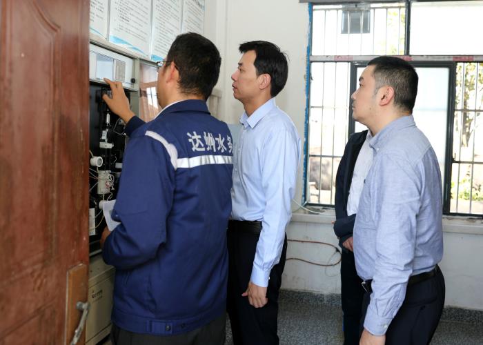 張俊懿一行實地查看了進水在線檢測室,詳細詢問污水廠近期運維情況,就處理工藝、運行參數及水質監(jiān)測情況進行深入交流。