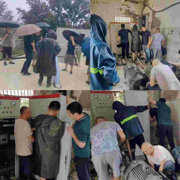 7月11日14時,搶修人員將磐石加壓泵房電機、配電設備移至安全地方,確保在汛期安全平穩(wěn)有序的生產。